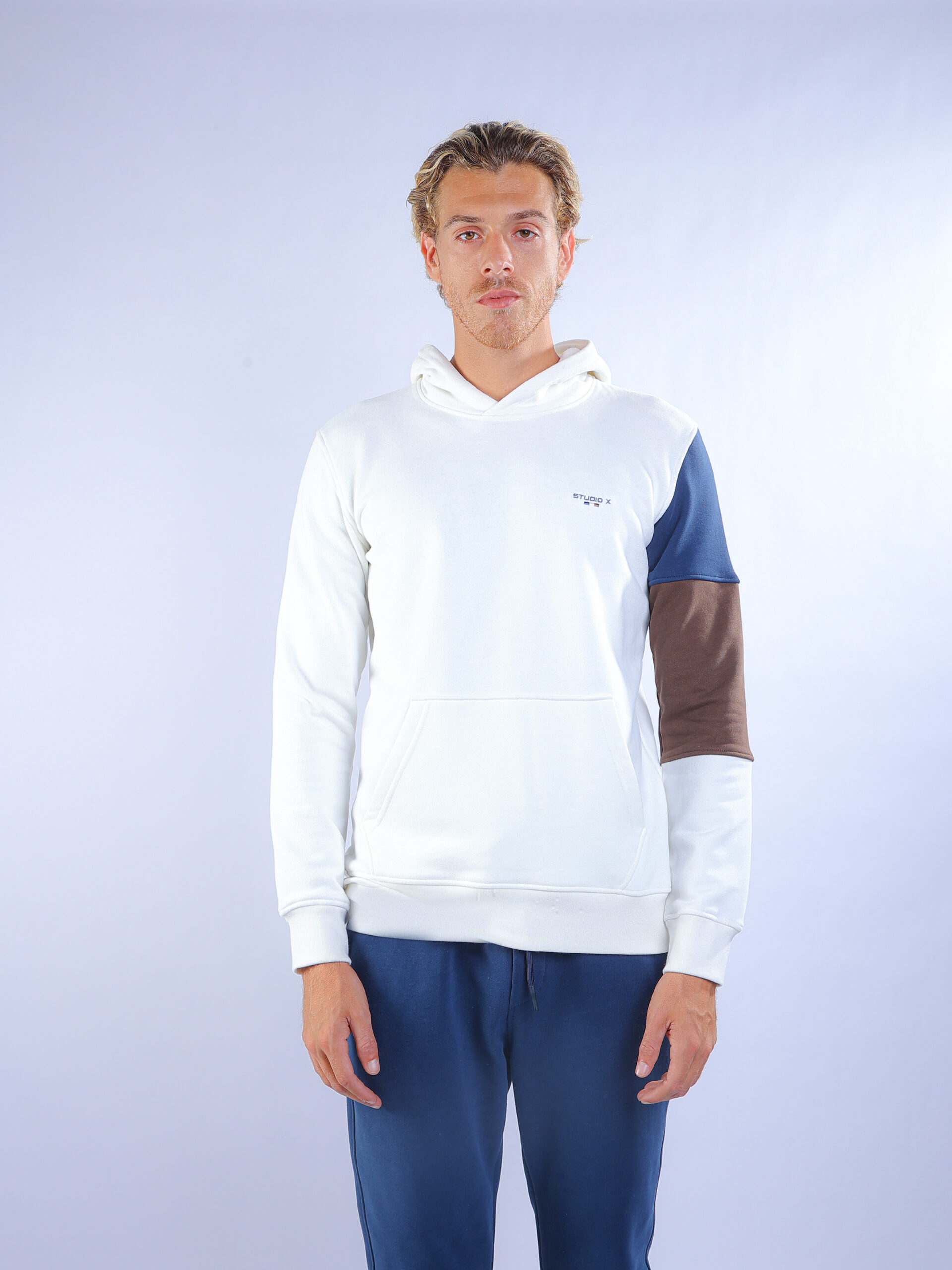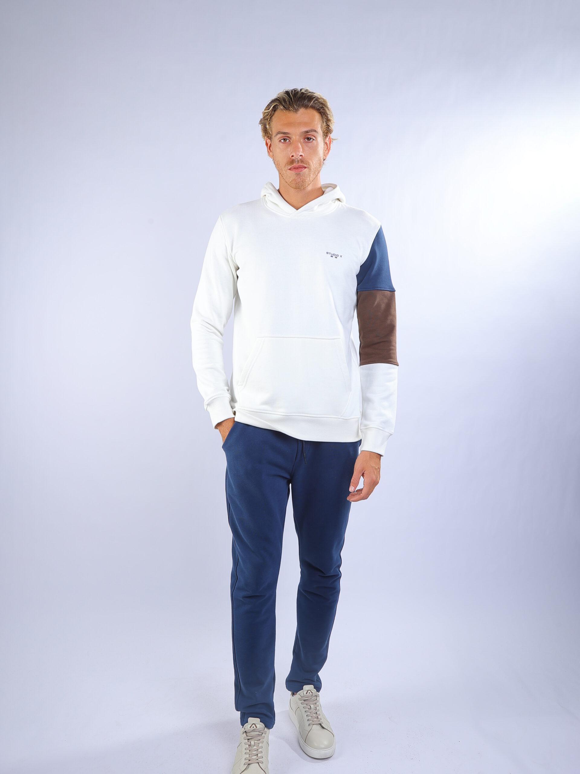 Color: White Hoodie + Blue Pants