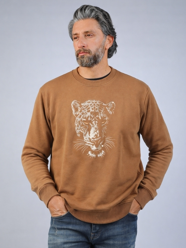 Material: 100% Breathable Cotton Made in Europe – Portugal Regular Fit Crewneck Front Embroidered Tiger Artwork Neckline: Classic Crew Neck Season: Fall – Winter Essentials Collection Style: Luxury Casual / Street Luxury Gender: Men’s Collection Fabric Feel: Soft Touch / Breathable / Mid-Weight Construction: Reinforced Collar & Cuffs